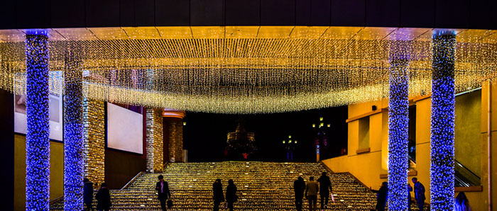 商業建筑夜景照明工程展示了商業繁華的夜景氛圍,商業建筑往往坐落在城市人流多地段,處在城市的經濟中心或區域經濟中心,是夜晚人群聚集比較密集的地方。商業建筑夜景照明工程應該體現出其繁華的氣氛,綜合考慮亮燈水平、明暗關系、光色及照明手法的整體協調性。