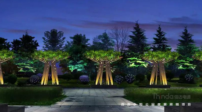 在景觀亮化工程中LED燈具的安裝需要考慮燈具位置同被照射體的關系,以及如何隱藏燈具還能達到一個理想的照射效果,例如在于植被的照射關系中,如何將它們的形狀、色彩、細部、質地等呈現出來,前向光表現形狀,強調細部和顏色,通過調整燈具與植被的距離以減弱或加強紋理,背光僅表達形狀,通過將植被從背景中分離出來以增加層次感,測光強調植物紋理并形成陰影,通過陰影的幾何關系將不同區域的照明效果聯系到一起。