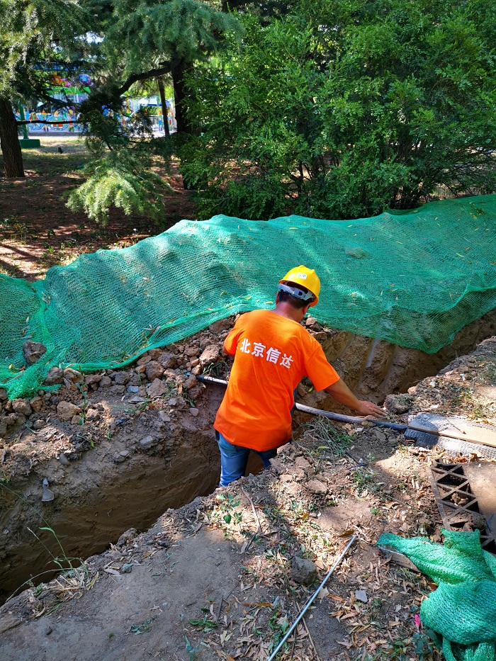 管道挖溝,根據夜景照明項目情況和測量標示的路線人工開挖土方,土方開挖時應根據溝深和土質情況適當放坡,以防塌方。經自檢和甲方或監理人員檢查驗收后,方可敷設電纜保護管和回填。
