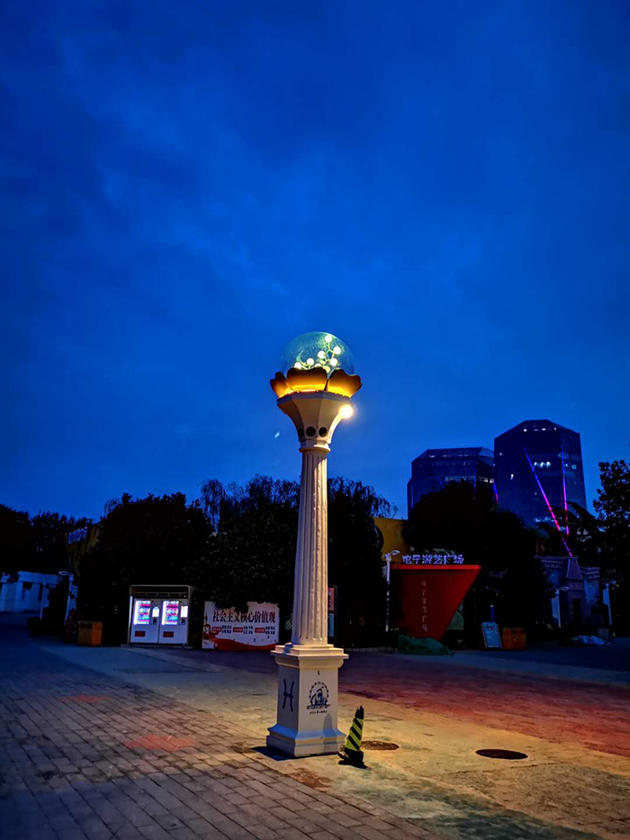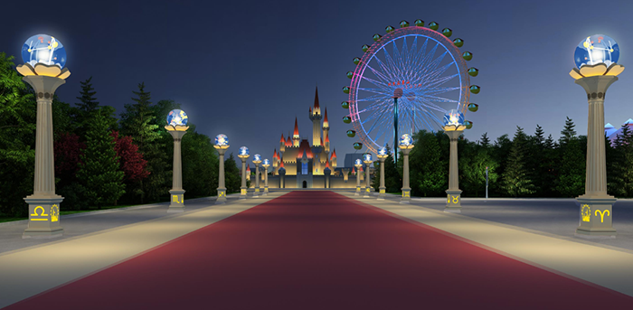 在設計中,信達電通以12星座為元素,分別將星座圖案及形象圖至于燈柱底座及頂部,并通過現代工藝實現其夜間景觀效果。