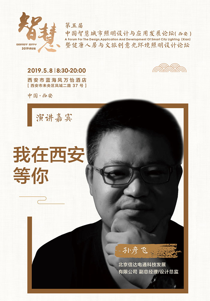 5月8日,由陜西省照明學(xué)會、《第一設(shè)計》全媒體平臺聯(lián)合主辦的第五屆中國智慧城市照明設(shè)計與應(yīng)用發(fā)展論壇(西安)暨健康人居與文旅創(chuàng)意光環(huán)境照明設(shè)計論壇在西安藍海風(fēng)萬怡酒店順利舉行。來自全國各地的行業(yè)大咖、專家學(xué)者、照明企業(yè)齊聚西安,共同探討,把脈行業(yè)未來。北京信達電通科技發(fā)展有限公司規(guī)劃設(shè)計總監(jiān)孫彥飛先生出席論壇。