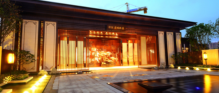 屋頂+屋身同時照明的解決方案,可以根據中式建筑的結構、明暗關系來決定燈光的照射角度和方向,突出開間的柱身韻律和檐下斗拱的層次,用光線大面積渲染屋身,勾勒局部有曲翹的屋頂,也可以用投光燈在特定的位置、角度勾勒中式建筑的輪廓,對古建筑屋脊或其他細部裝飾進行局部重點照明,用以強調中式建筑的古典美、建筑的神韻,同時進一步增加中式建筑在夜間的文化韻味和欣賞價值、商業價值。