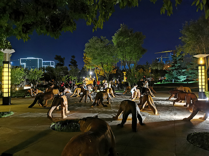 《高山流水》、《狼來了》、《蒼生》等七組雕塑代表作品給大家?guī)砜涨暗囊曈X盛宴與心靈震撼。深刻得表達(dá)了生態(tài)與人互相影響,互相升華的合一存在。
