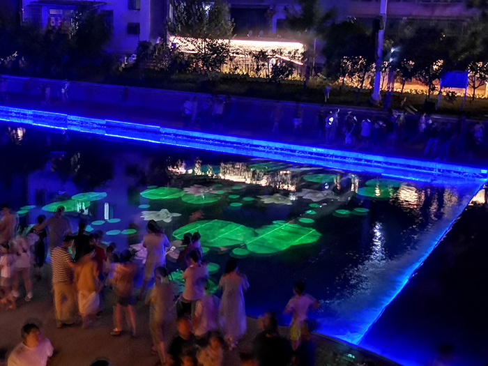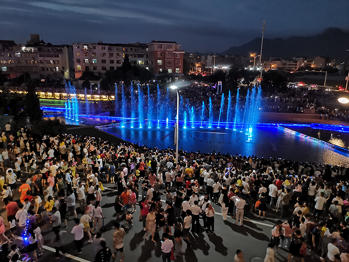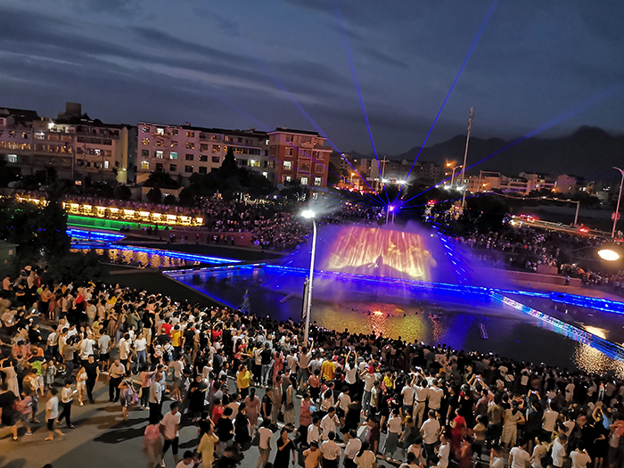 大陳江景觀帶音樂噴泉和水幕電影精彩呈現(xiàn),吸引了上萬居民圍觀。