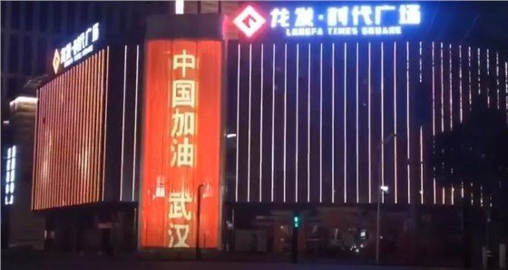 2月10日晚,華燈初上,位于西安高陵的一站式購(gòu)物中心——龍發(fā)時(shí)代廣場(chǎng),一組應(yīng)援武漢的標(biāo)語(yǔ)點(diǎn)亮,“武漢加油 中國(guó)加油”滾動(dòng)播出,不僅點(diǎn)亮夜空,更點(diǎn)燃西安廣大市民共同戰(zhàn)勝疫情的信心。