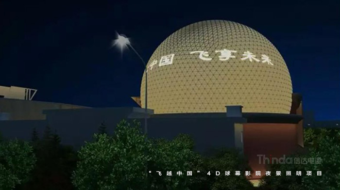 隨著球幕外立面光色切換,“我愛你中國”、“飛覽天下飛越中國”等主題字幕滾動播出。為實現(xiàn)預(yù)期的設(shè)計效果,信達(dá)團(tuán)隊多次夜間試燈。