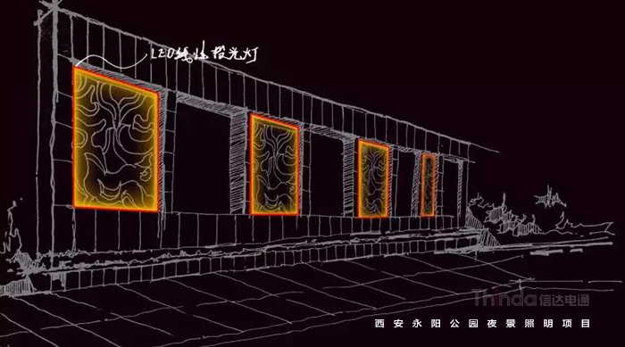 永陽公園是西安一個(gè)別開生面的科技公園,因地處唐代長安永陽坊而得名,位于西安市丈八東路和西灃公路十字路口,是由西安高新技術(shù)產(chǎn)業(yè)開發(fā)區(qū)興建,占地10萬平方米,2006年對(duì)外開放。繼2016年完成西安高新區(qū)夜景亮化設(shè)計(jì)之后,信達(dá)電通對(duì)永陽公園進(jìn)行夜景照明規(guī)劃設(shè)計(jì)。