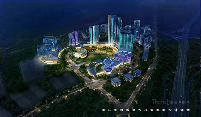 信達電通以梳理景觀層次,打造宜觀、宜居的夜環境;綜合國家照明標準與仙桃國際數據谷自身特性,合理規劃功能照明;在防控光污染、照明控制技術、照明手法三個層面體現“仙桃國際數據谷”,打造智慧城市、低碳交通、健康宜居環境、科技智慧支撐平臺;營造優美的重慶夜景觀城市地標為照明目標。
